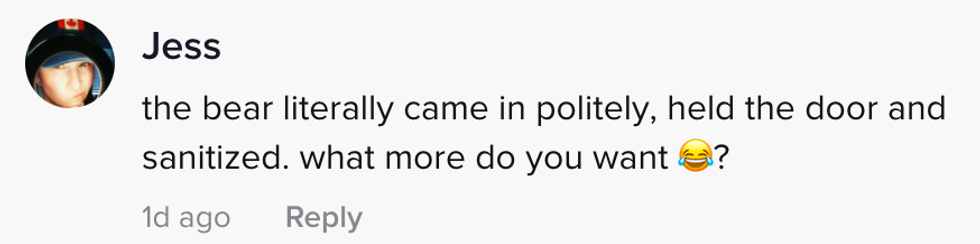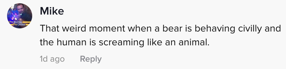 She continues to yell while the bear, confused, stands there and sniffs more.