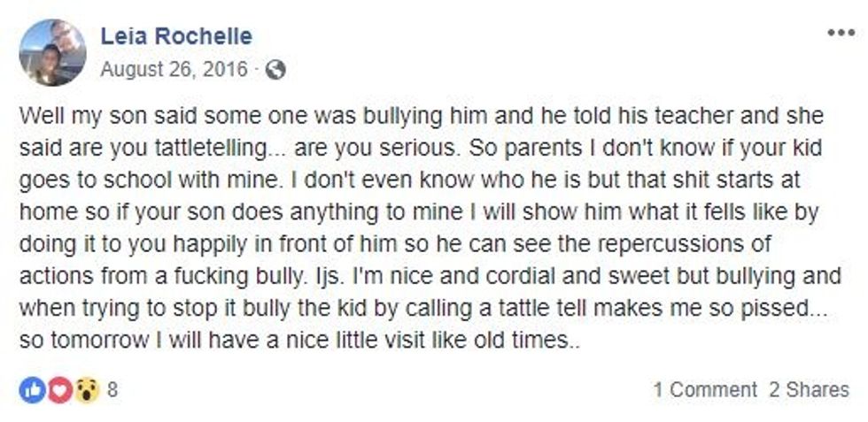 In a Facebook post from 2016 Pierce discusses the bullying her son endured .