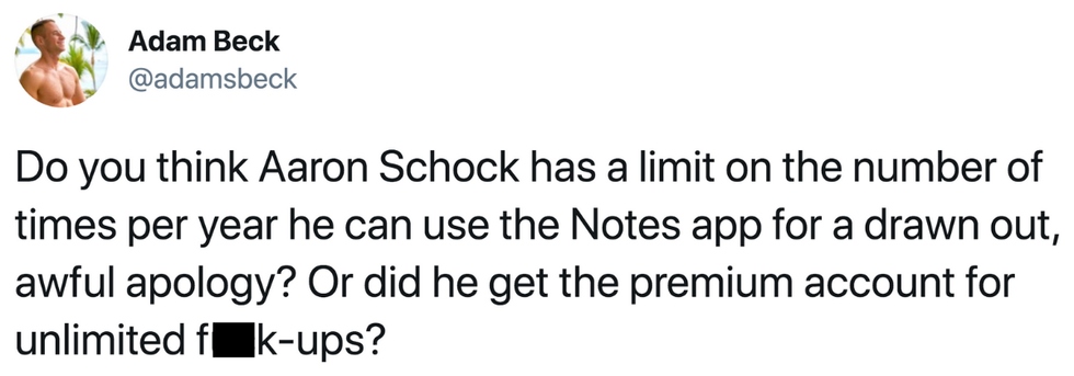 Needless to say, Schock's coming out was greeted with somewhat less enthusiasm than most by the LGBTQ community. Now, he's managed to keep his bad reputation alive by failing to socially distance and instead partying it up on a beach in Mexico during the pandemic.