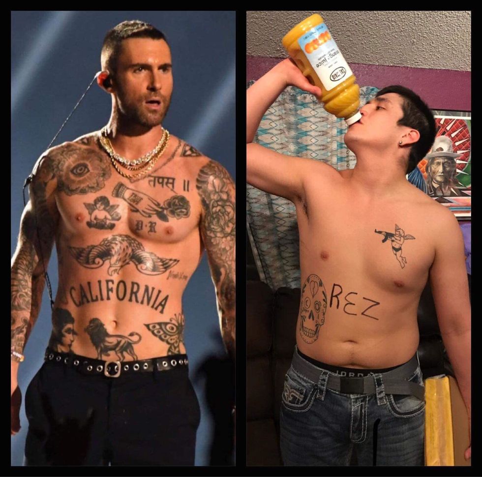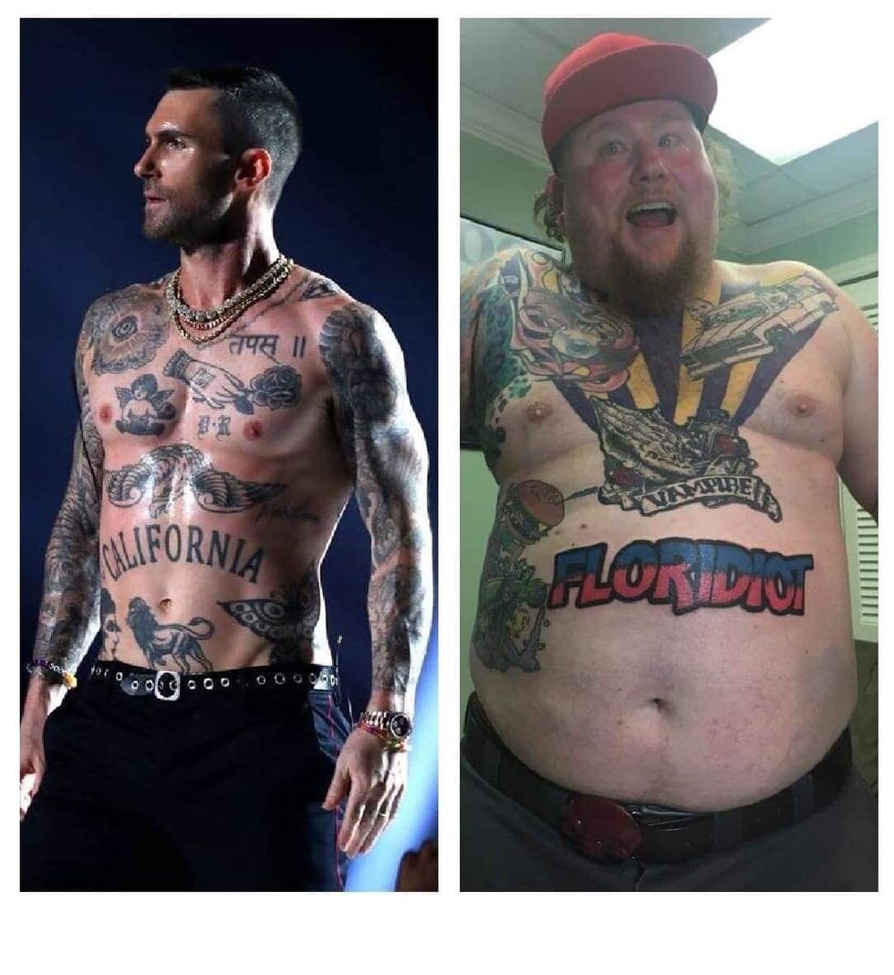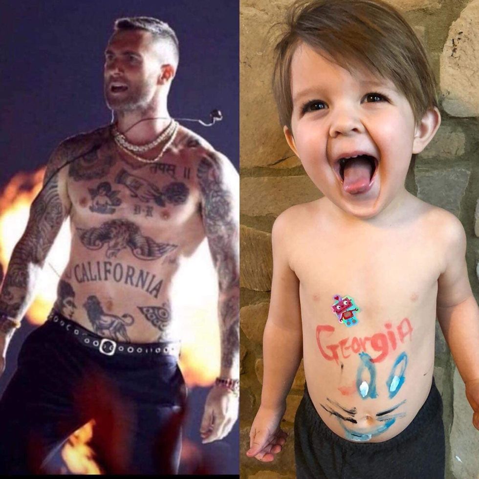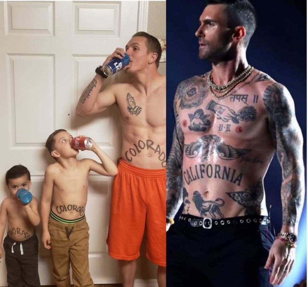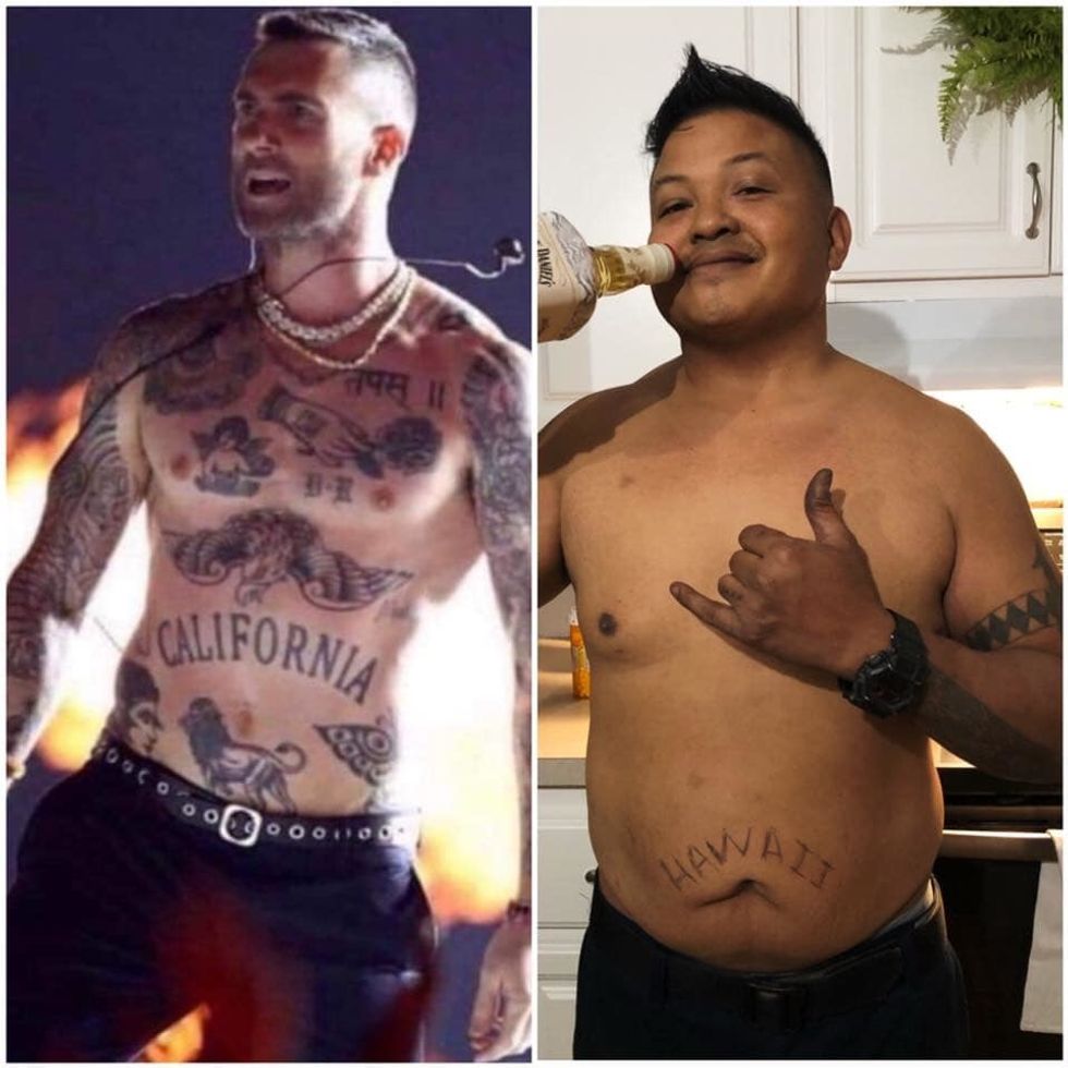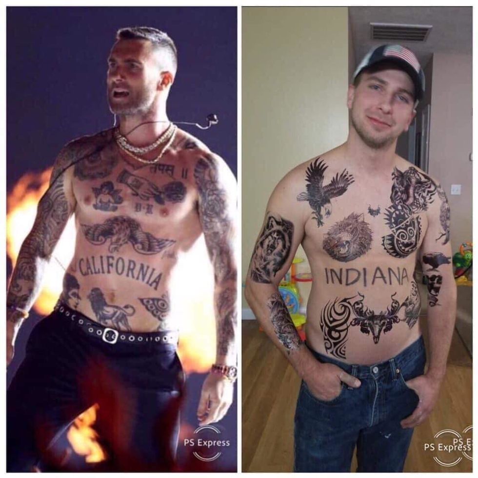 Perhaps the most pronounced of the Maroon 5 frontman's tattoos was the word "California" written on his torso in all caps.