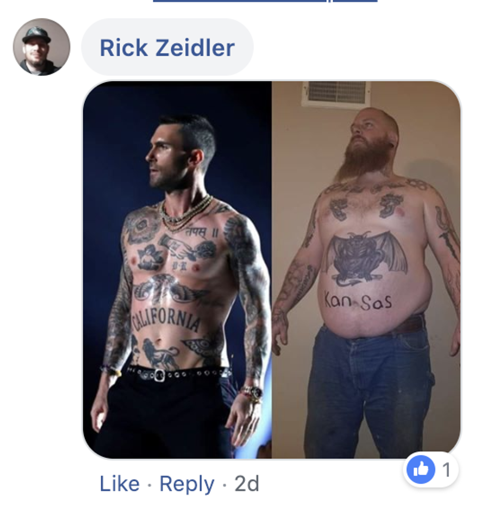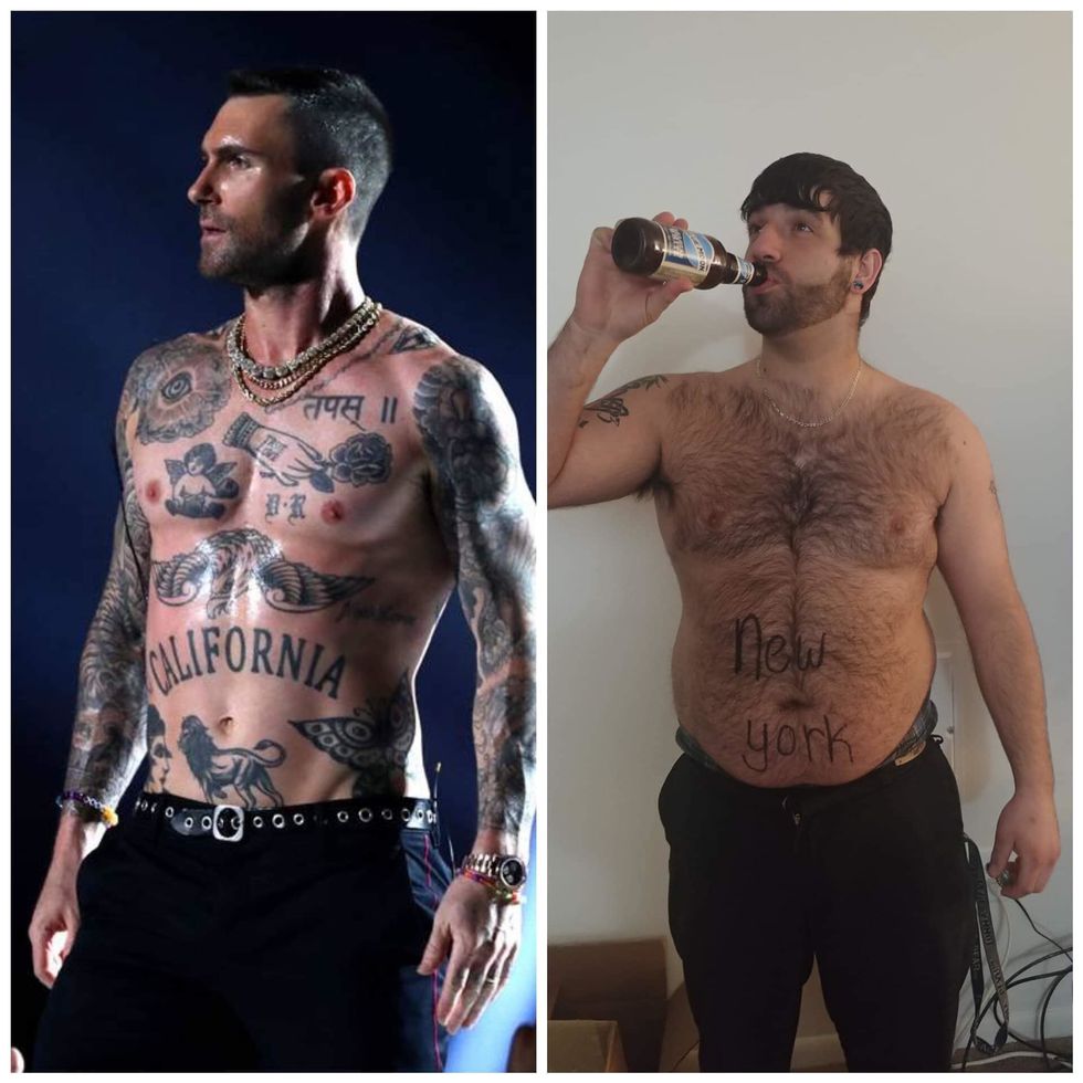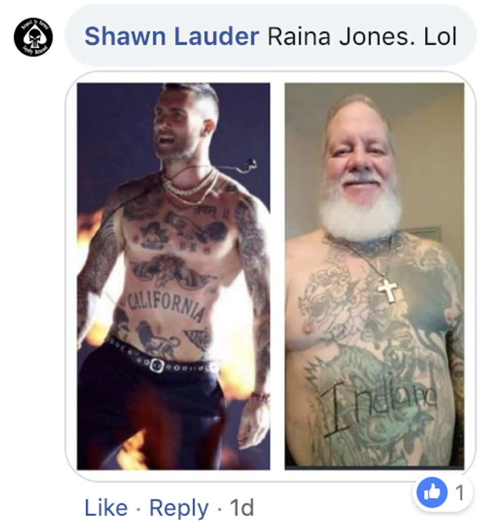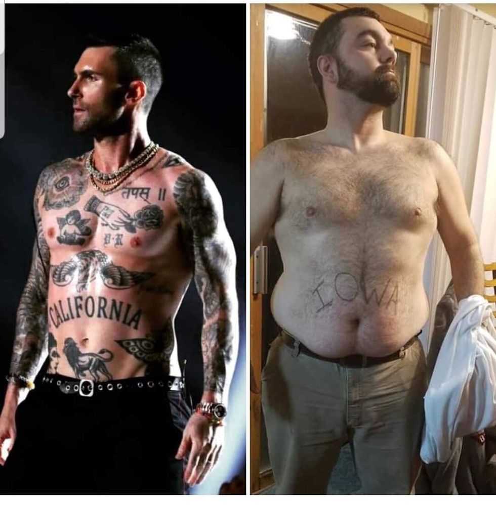 On SuperBowl Monday (if you will), Delaney posted some side-by-side pictures of a shirtless Levine along with other men with their home state proudly emblazoned on their chests.