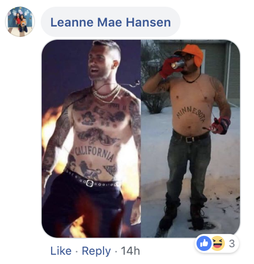 One of the best meme efforts from the halftime show was begun by a Daisy Delaney on Facebook.