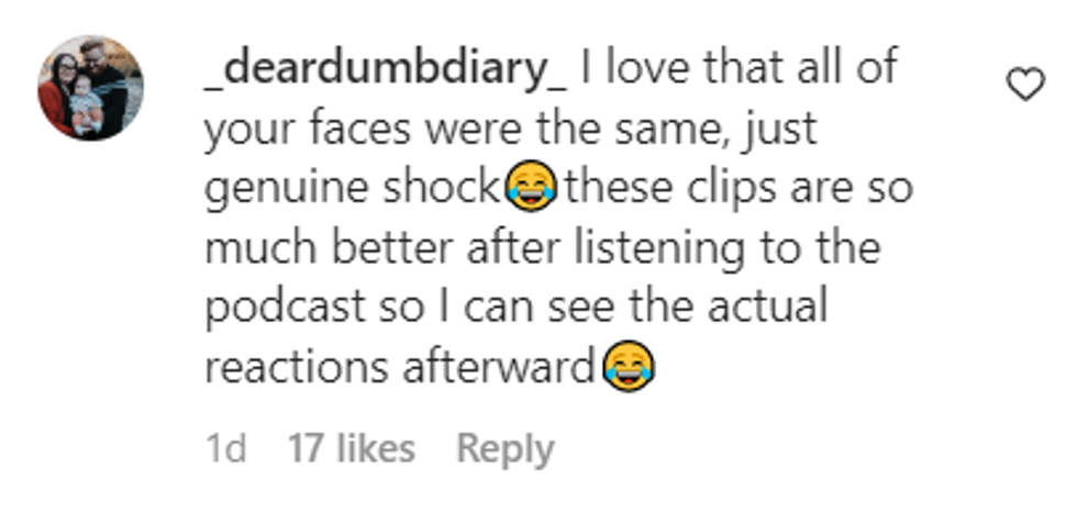 The rest of the podcast cast was left gasping, with gaping mouths and covering their mouths, shocked.