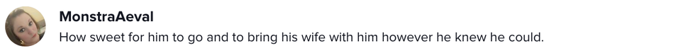 Many viewers commented on the way the man seemed so happy to be experiencing the moment with the memory of his wife and the way he looked at the picture.