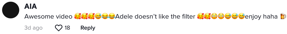 Unbeknownst to Adele, fan Jamy G—TikToker @ilovejamyg—was using a filter on her camera.