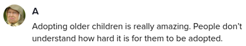 "We had to take adoption classes, and what really stuck with me in the adoption class was that sometimes kids over the age of 2 are classified as 'unadoptable' because nobody really wants a child that's not a baby."