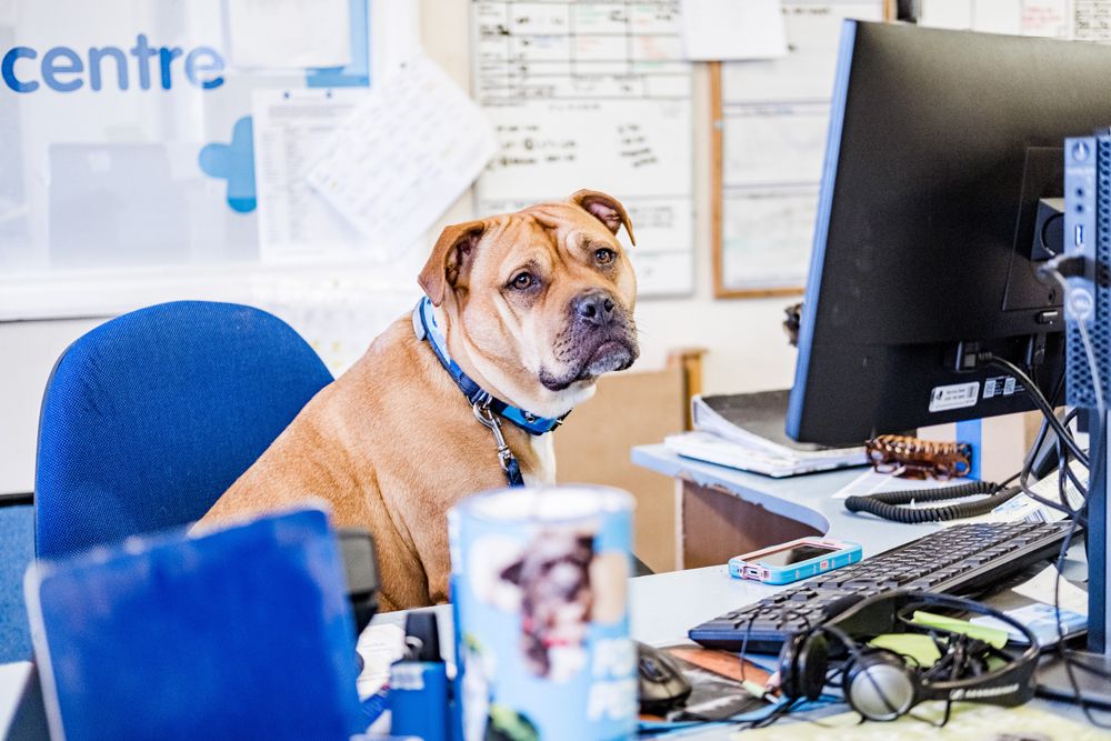 “She's a real part of the team at work. She'll sometimes sit at reception, greeting everyone that comes in, and even in meetings, she'll join in and jump up on a chair, sitting there like a human."