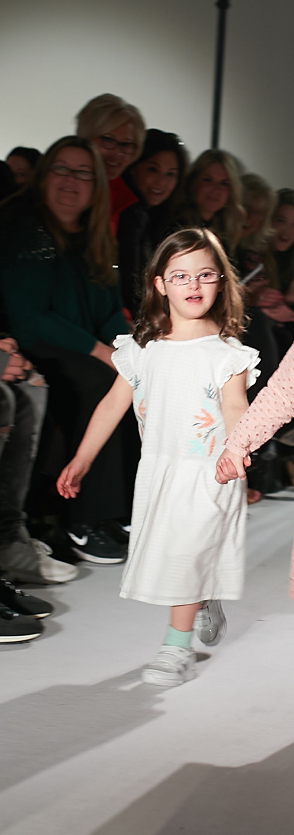 A mom who discovered her IVF baby had Down’s Syndrome an hour after her birth – then being told she may never walk or talk – proudly watched her modelling at London Kids Fashion Week.
