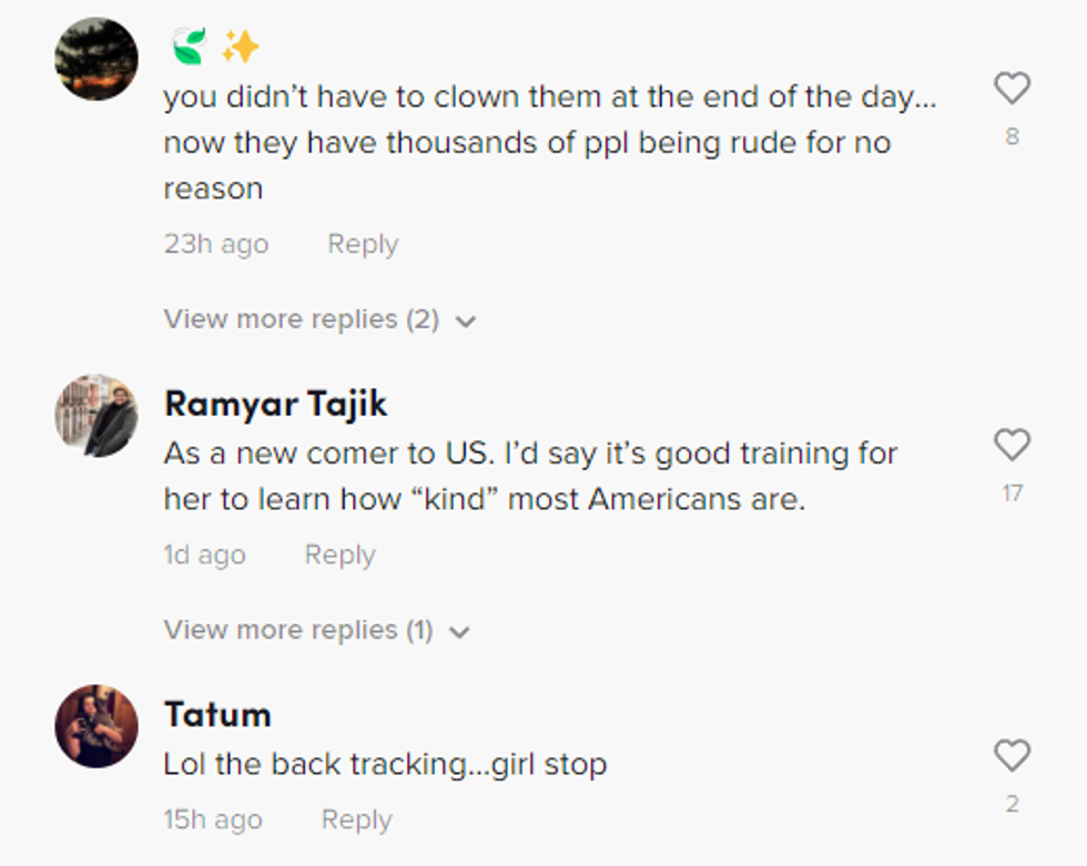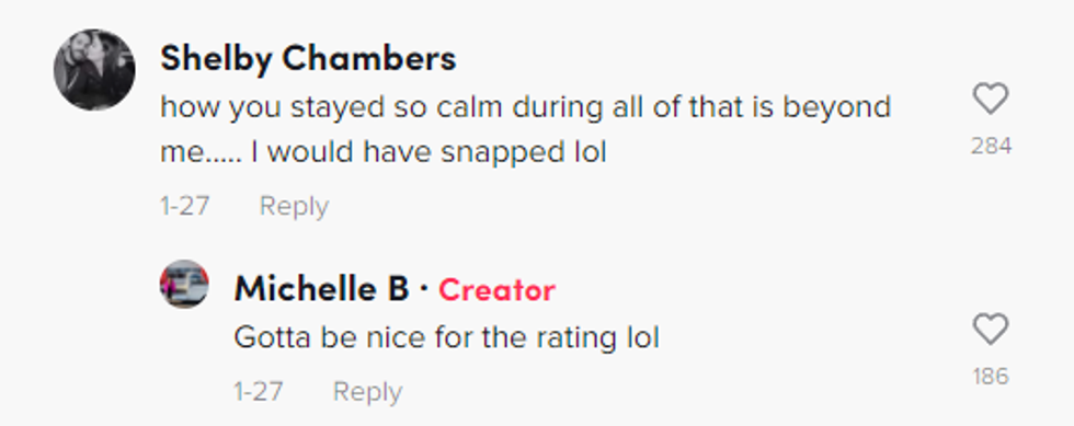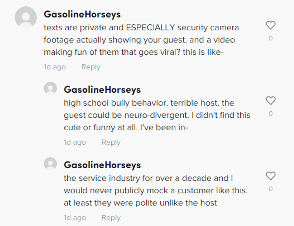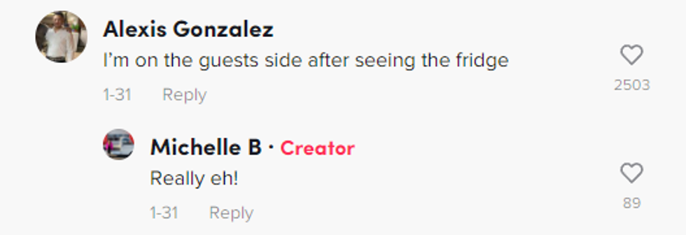 Michelle responded to a comment with one more video, this time to her guest should they ever see the videos and exchanges on TikTok—which is much more likely now that the video has gone viral and articles are being written.