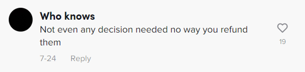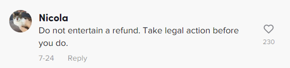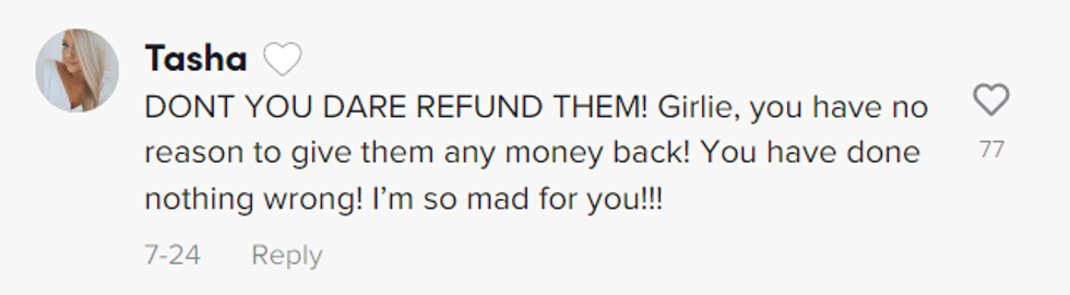 TikTok was furious on Jade's behalf and hoped that she would not provide a refund.