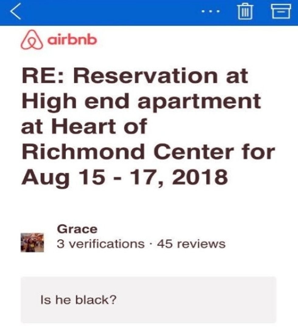 She claimed her apartment doesn't allow Airbnb rentals at all and the presence of a black person entering the building would tip off management: