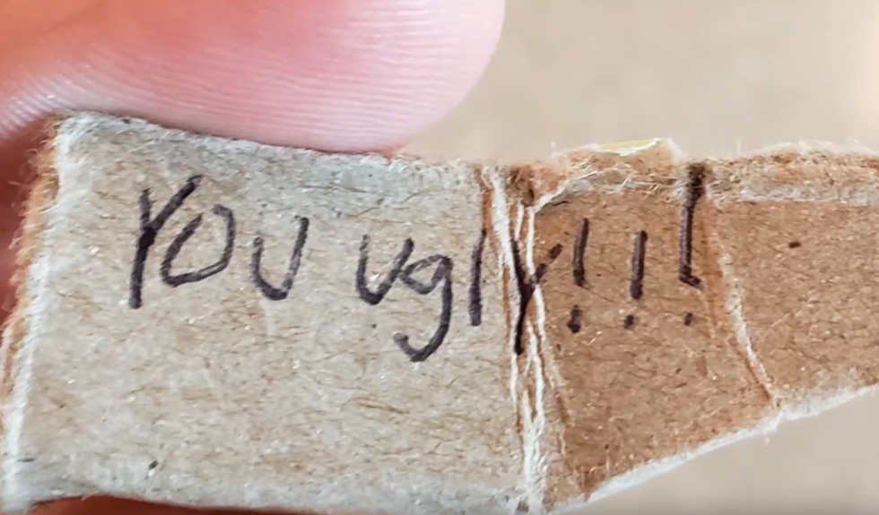 After reading the obnoxious chickenscratch, Strassner said the woman burst out laughing over her juvenile prank.