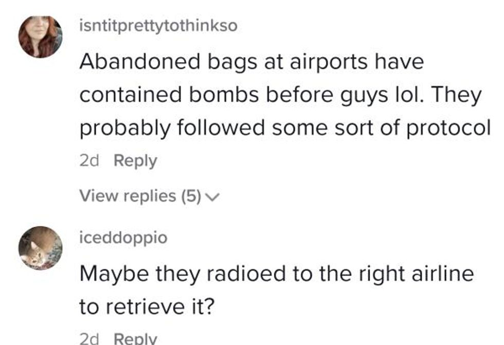 Because of this, many argued there were protocols in place surrounding a lost piece of luggage like that. The most common theory is handlers for other airlines cannot take the baggage if it's not flying with them.
