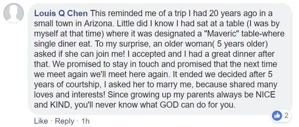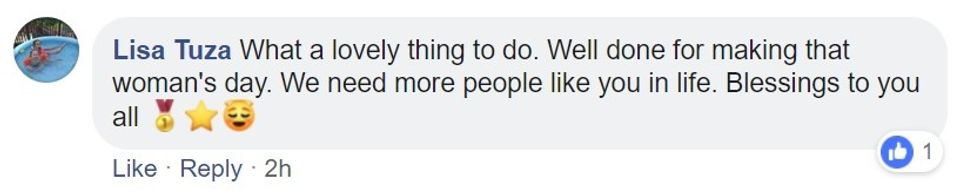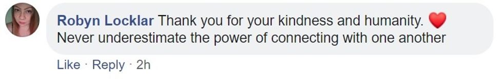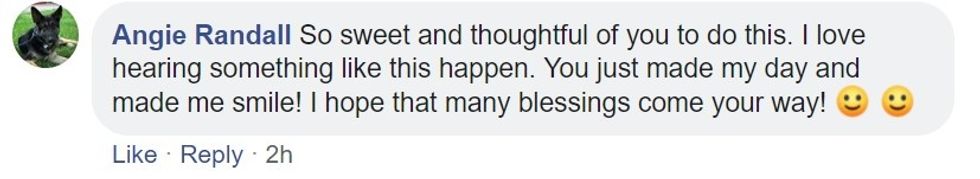 The post seemed to strike a chord on Facebook. Many users commented with their compliments and thankfulness at being reminded of how powerful kindness can be.