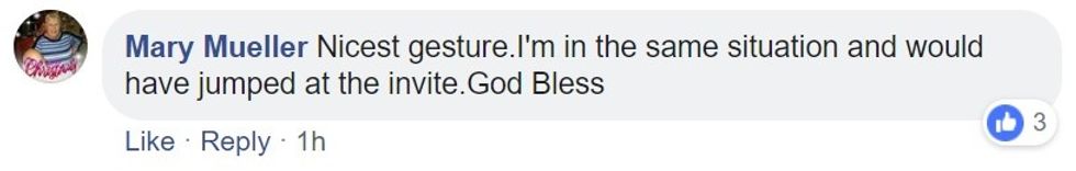 "She said yes and we talked for a minute and after a while of talking she told me she lost her husband and that tomorrow would have been their 60th anniversary. I instantly gave my condolences and asked her to come eat with us, which she was excited to do."