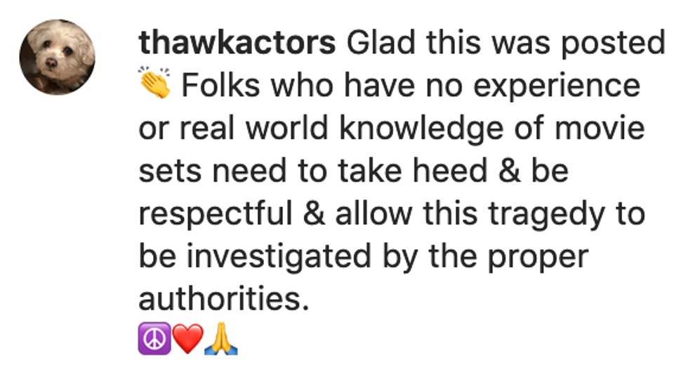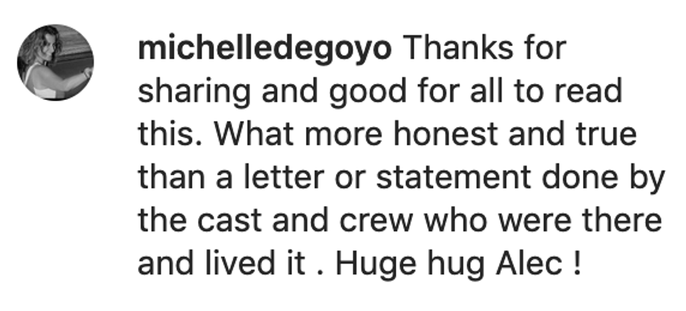 "Rust was not one of them. Rust was professional. We do acknowledge that no set is perfect, and like any production, Rust had areas of brilliance and areas that were more challenging."
