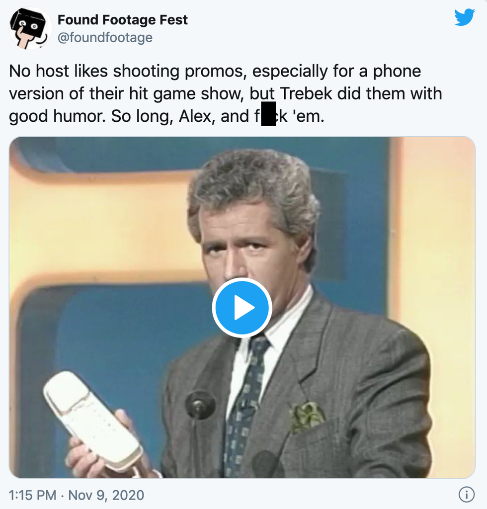 In the spirit of Trebek's foul mouth heard in these vintage footage clips, the website's Twitter page captioned their post with: