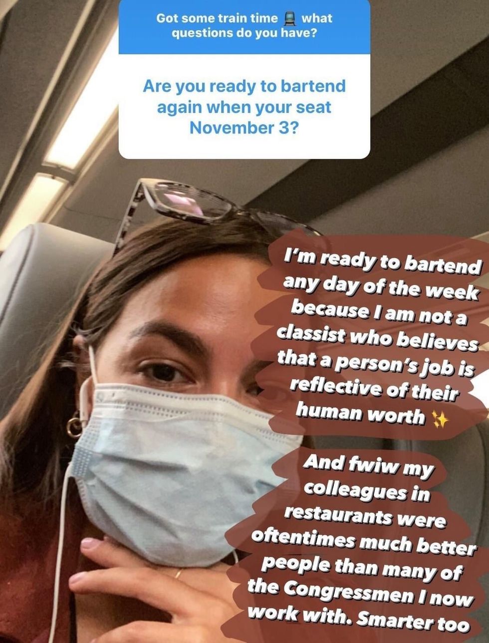 This is just a reminder of how awesome a human AOC is. When asked if she's ready to bartend again, she responds, "I'm ready to bartend any day of the week because I'm not a classist who believes that a person's job is reflective of their human worth." ❤ pic.twitter.com/teHJFV9OYF