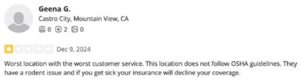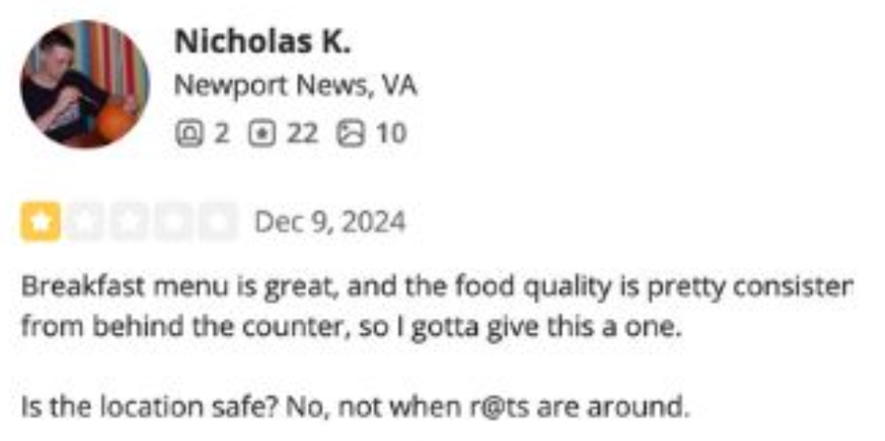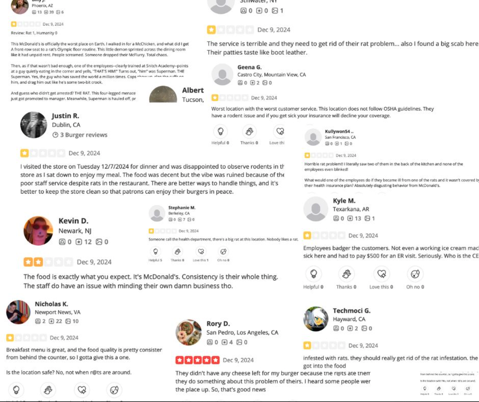 Many gave 1-star reviews to the restaurants because they were "full of snitches," while others focused on a "rat problem"—presumably of the tattle-tale type, not the rodent type.