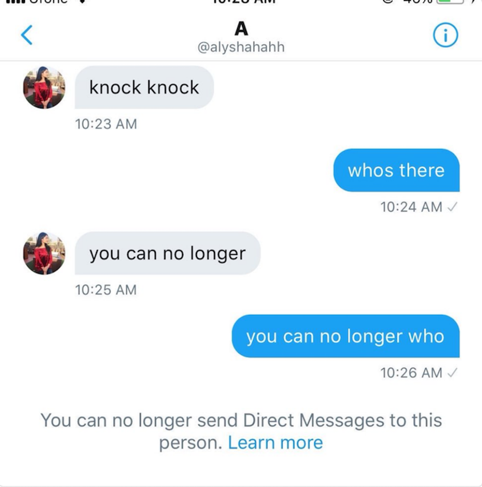 Shayyan was a good sport about being blocked. He took a screenshot of his dismissal and posted it on Twitter; his DM soon went viral, garnering over 7,500 likes.