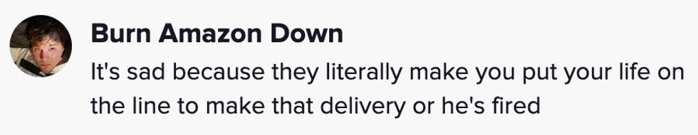 Since many big corporations–and even small businesses–view workers as disposable, this guy was not about to be unemployed by Amazon CEO Jeff Bezos even if his life depended on it.