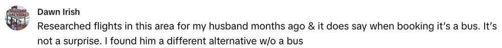 The next photo, however, showed what her husband actually boarded at the gate: a bus.