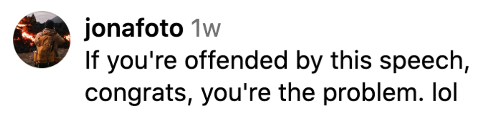However others pointed out if you were offended by what he was saying, you were probably part of the problem.
