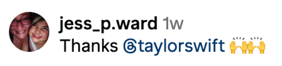 The post's graphic accompanied a caption that first praised Swift's accomplishment.