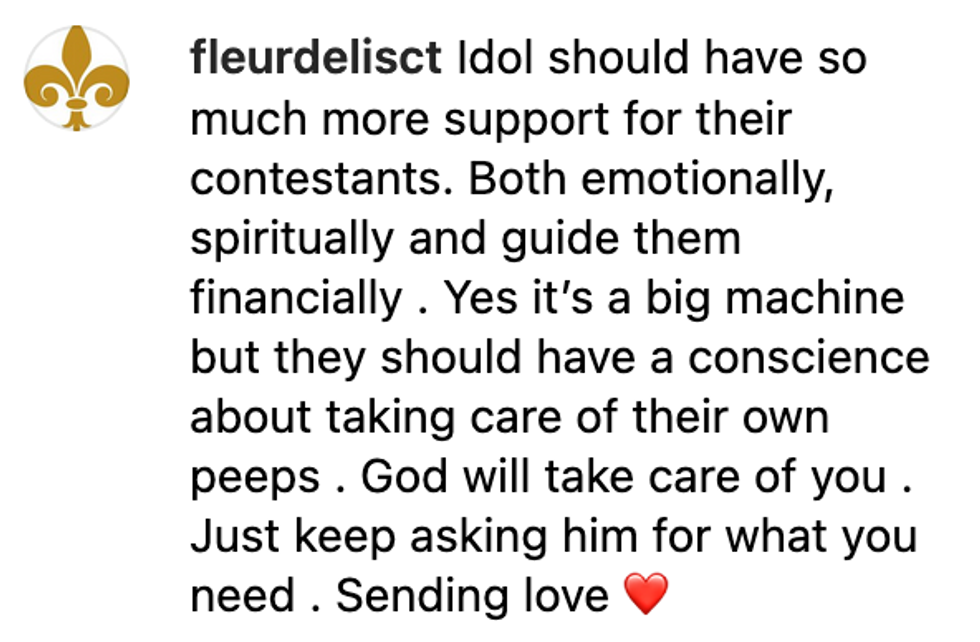 “It’s just hard because I’m coming out of pocket and have bills to pay. And American Idol is not going to pay my bills.”