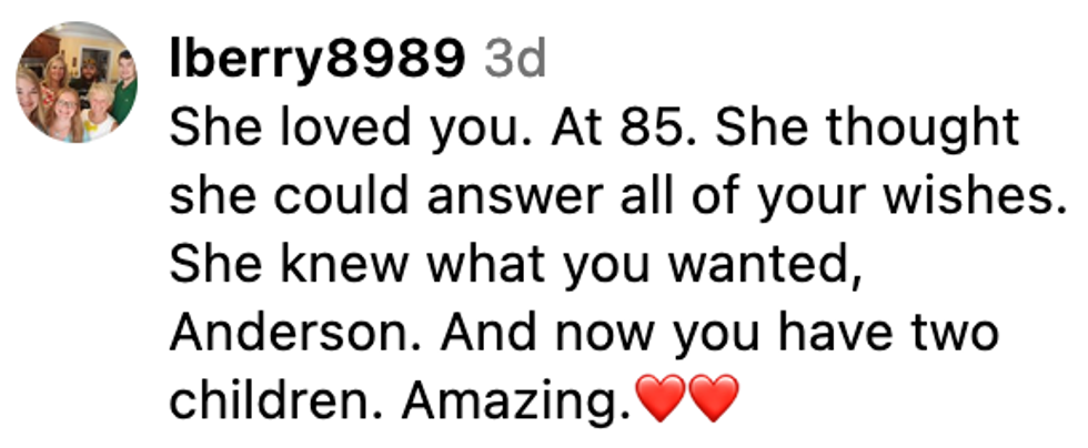 Sadly, Vanderbilt passed away in 2019, just a year before Cooper and former partner Benjamin Maisani welcomed Wyatt in 2020, followed by Sebastian in 2022, both via surrogate. But at least Cooper has a funny and endearing story about his boys' "bats--t" grandma to tell them one day!