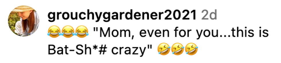"I said, 'Mom, I love you. But even for you this is bats--t crazy.'"