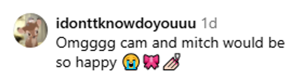 Fellow Instagrammers were quick to imagine how proud and supportive Mitch and Cam would be.