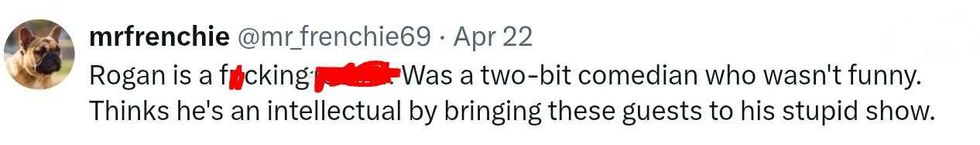 "Joe f*cking Rogan. What a f*cking idiot. Sorry."