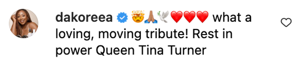 "I shall hold these words close to my heart for the rest of my days. I am honored to have known Tina Turner."