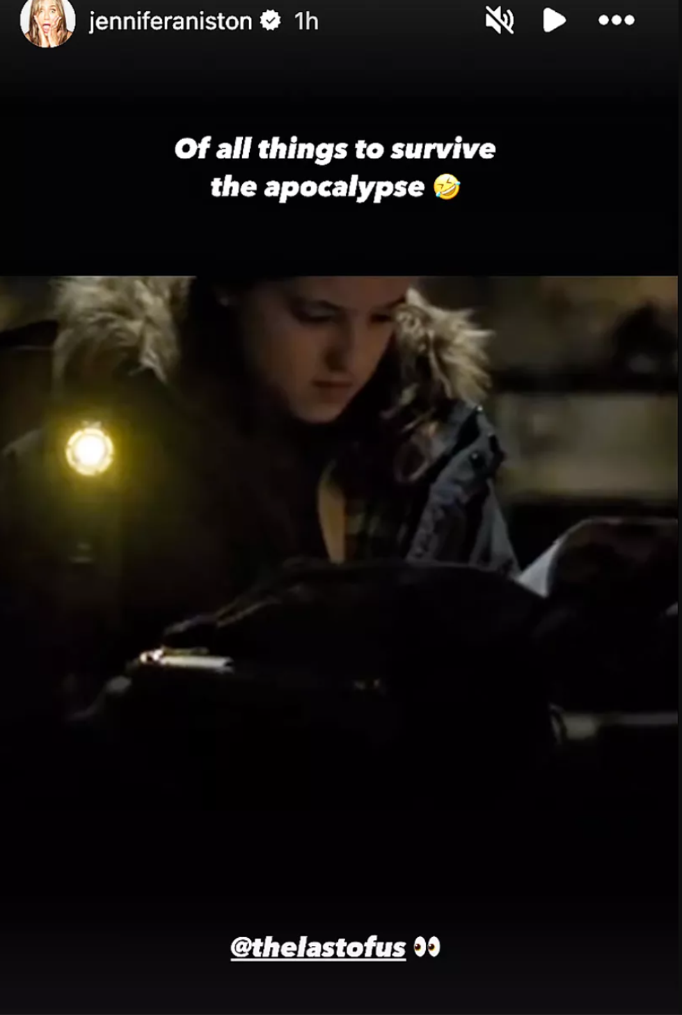 Aniston, ever the good sport, reacted to the moment with humor on social media. She reposted the clip to her Instagram story, writing, “Of all the things to survive the apocalypse 🤣,” and tagged the official show account, adding a sly emoji.
