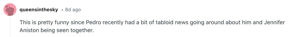 Folks were unable to resist noting rumors swirling about Aniston going to dinner with Pedro Pascal.