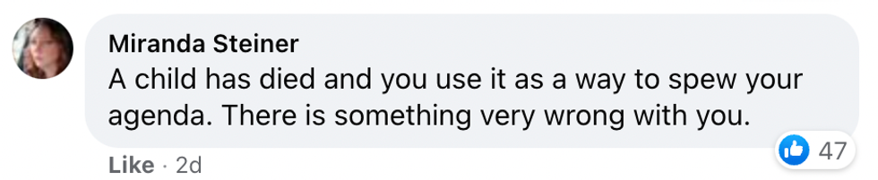 "It is very unfortunate that the haters came at me and my business again and completely ignored the fact of the grieving people here while we actively searched for the parents and family members of the child."