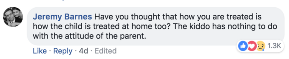 Which, fair enough. But if you're so frustrated with your job that your response is to mirror bad behavior onto a child... perhaps you're in the wrong profession? Just a thought!