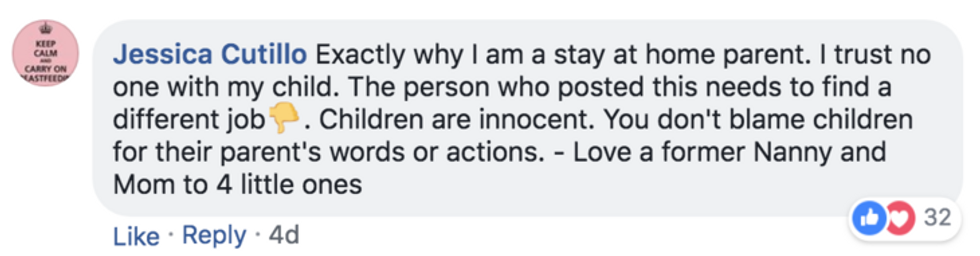 Many pointed out the fact that if the parents are awful to a childcare worker, they may well be awful to the child as well--and may need the worker's protection: