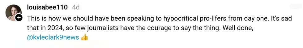 Clark asked Holtorf why—if he believes no pregnant person has a right to make their own choices or follow proven medical procedures—he encouraged his girlfriend to get an abortion.