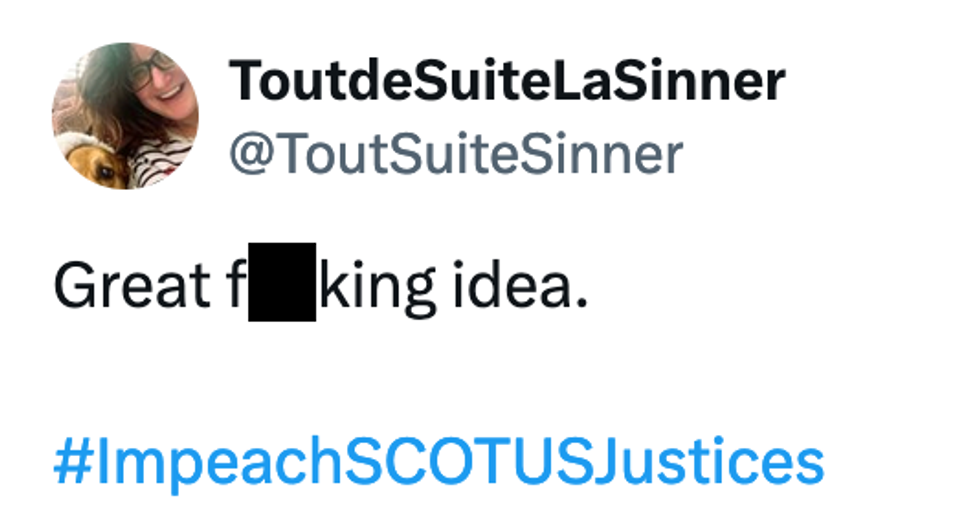 AOC did not name the Justice or Justices whom she intends to target for impeachment, but one suspects Justices Clarence Thomas and Samuel Alito, who by all rights should have recused themselves from the case, are among them.