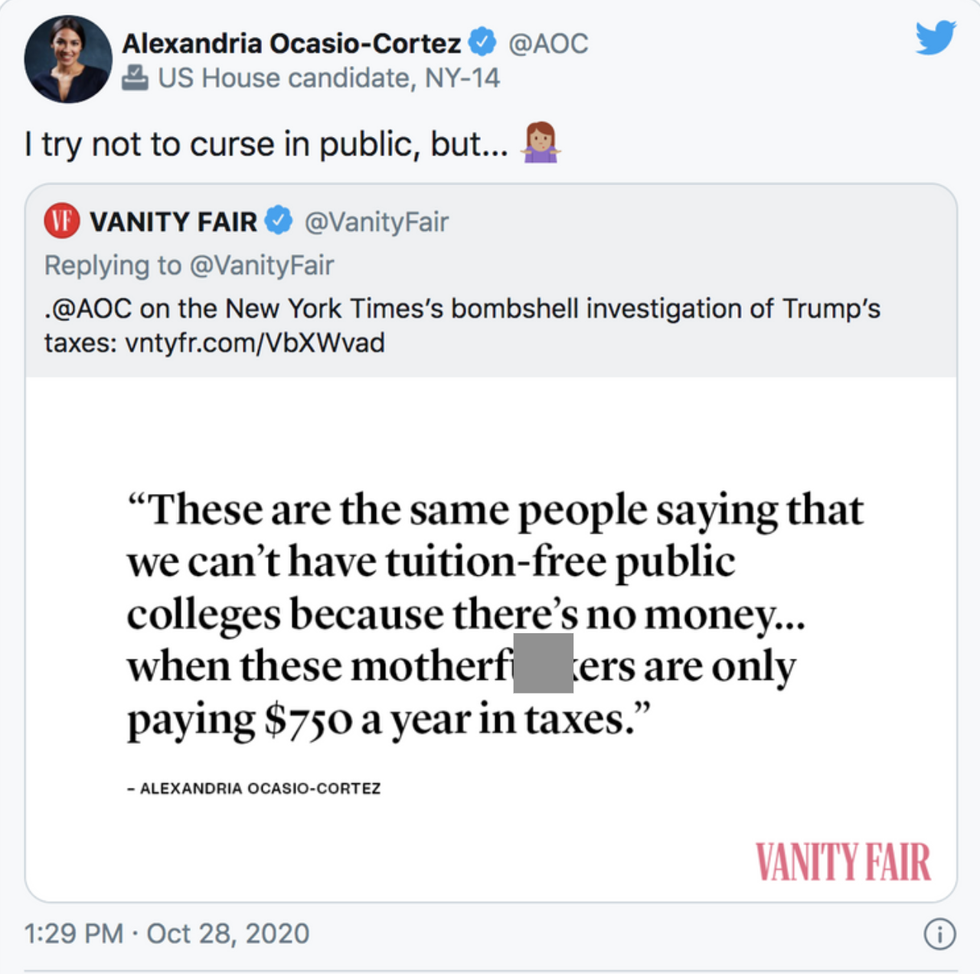 Speaking the truth, even if that requires some profanity... @AOC 🙏💕🤟 https://t.co/y9M3KNkxTa