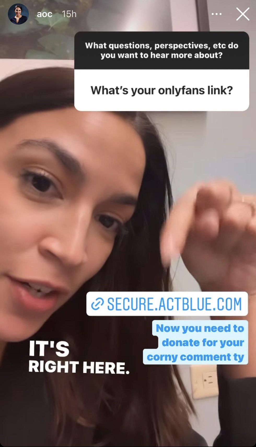 It all began when someone responded to AOC's call for questions on her Instagram story with the submitted query, "What's your onlyfans link?"