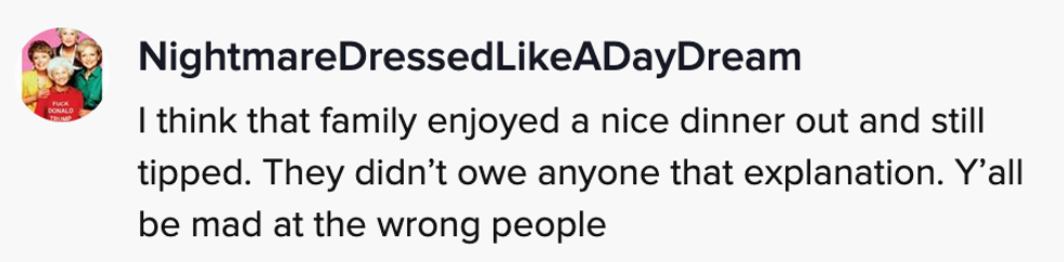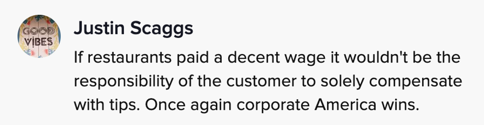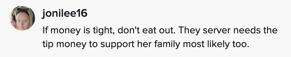 Many supported the server and admitted they would rather stay home if they couldn't leave a proper tip.