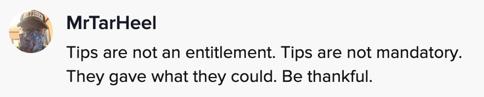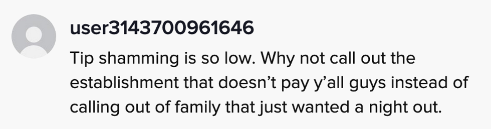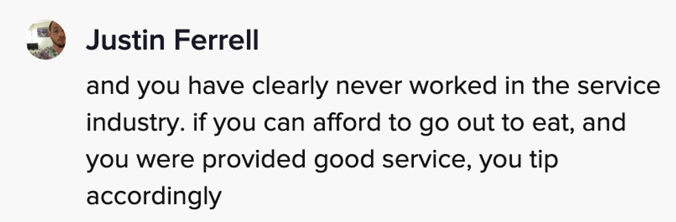 People were divided in the comments, with some TikTokers slamming an industry in which workers are reliant on tips due to low wages, and others criticizing the server for tip-shaming.