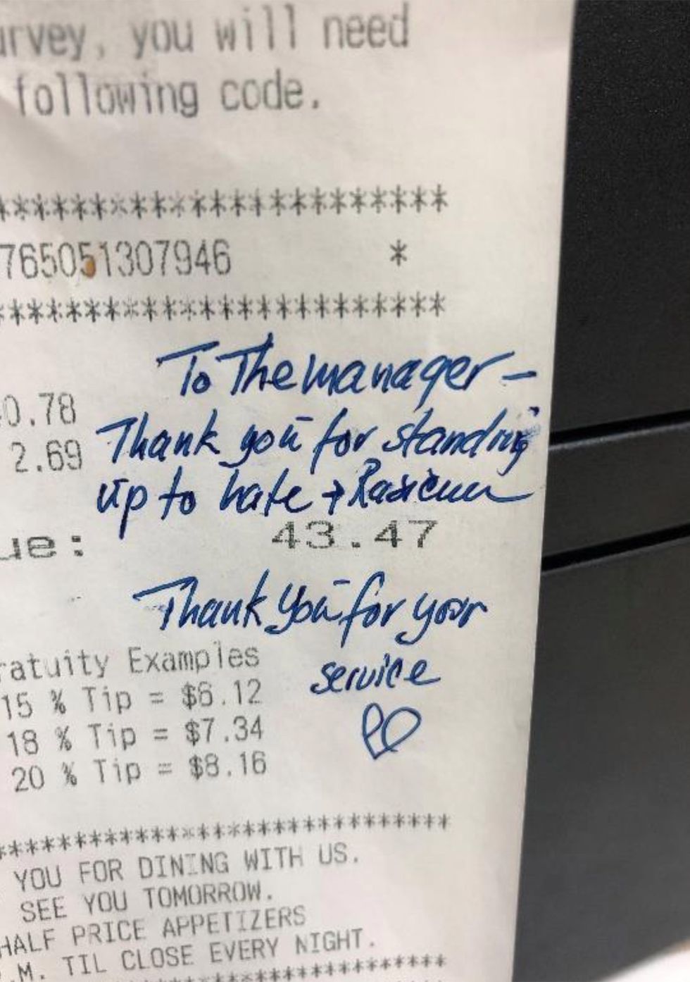 Breaud said several customers thanked her for removing him, with one even leaving a note on their receipt.
