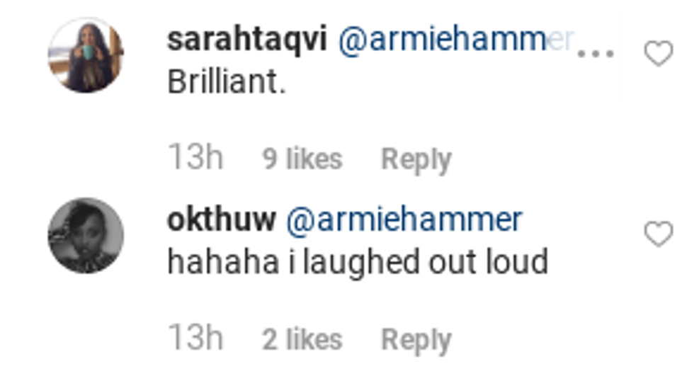 Of course, Instagram blew up in reaction to Hammer's reference to the film.