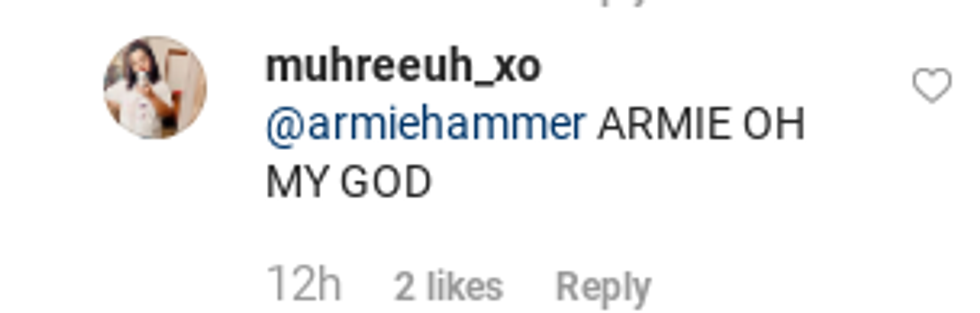 For anyone who is a fan of Hammer and Chalamet's work, they'll recognize this as a reference for their film together, Call Me By Your Name.