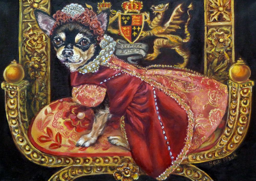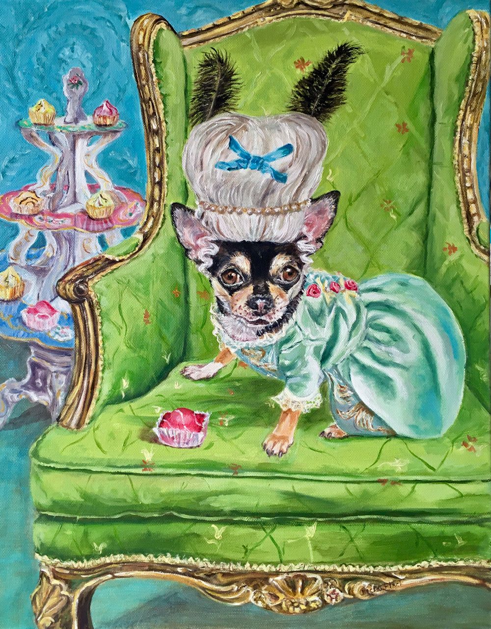 An artist has found the paw-fect muse in her rescue Chihuahua – selling portraits of the pooch dressed as everything from Queen Elizabeth I to Wonder Woman, for £600 (~$744) a pop.