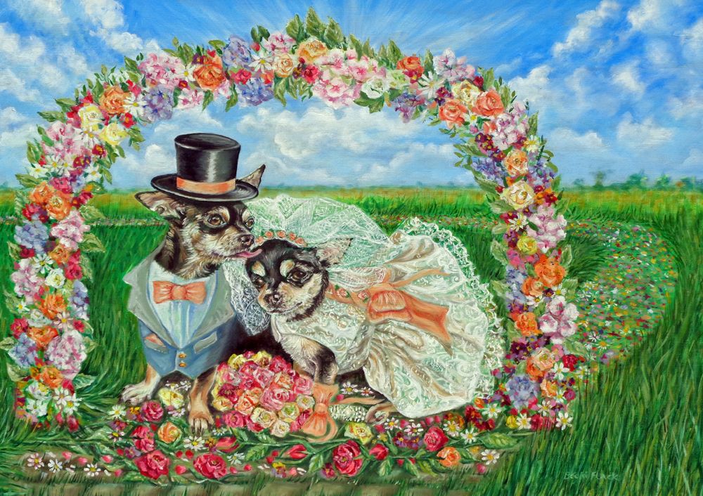 A month after bringing Tita home, Becki took the pint-sized pup to her art studio for her first paw-trait.